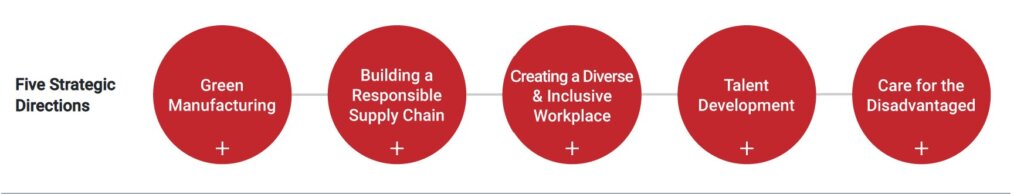 TSMC has developed some creative methods to engage employees in sustainability and has an annual ESG award, which means there is an annual contest. The contest is based on five strategic directions shown in figure 1.