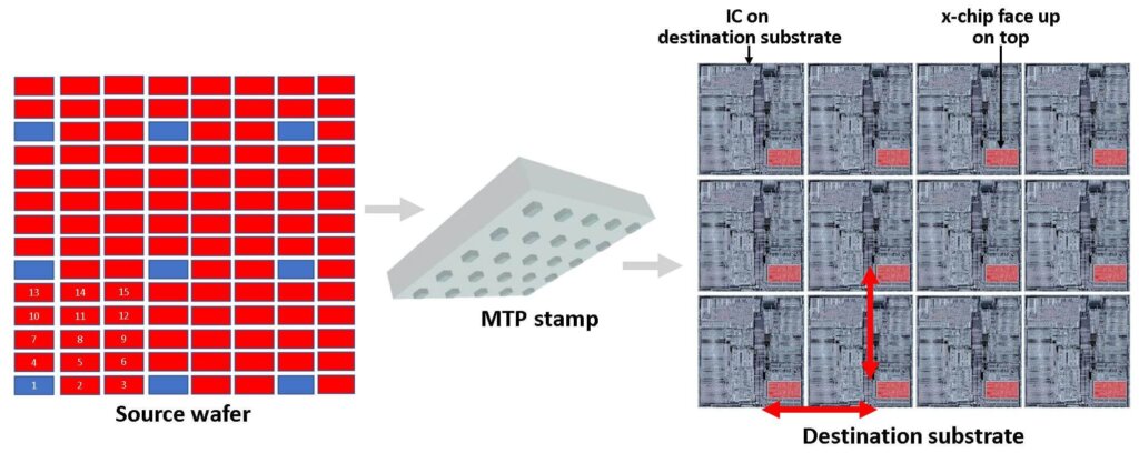 A proven method for manufacturing 3DICs that heterogeneously integrate compound semiconductors and silicon is micro-transfer printing technology (MTP). MTP heterogeneously integrates compound semiconductors and silicon in a massively parallel pick-and-place process that efficiently transfers large arrays of ultra-thin (<20mm), small, separately manufactured components (x-chips), from one or more source wafers to destination substrates. The MTP manufacturing steps are: