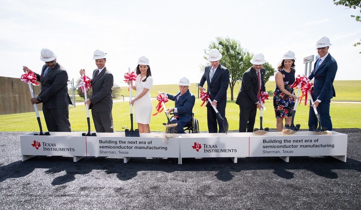 Feature photo above: Texas Instruments Chairman, President, and CEO Rich Templeton (center); Texas Governor Greg Abbott; and Sherman Mayor David Plyler, along with company leaders, participate in a groundbreaking ceremony for TI’s new 300-mm semiconductor fabs in Sherman, Texas.
