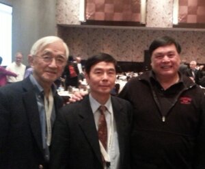 Next is Bill Chen who is recognized by all, and rightly so, as the father of the Heterogeneous Integration Roadmap. Figure 3 shows Bill accepting the Dan Hughes Award from IMAPS President, Beth Keser. Figure 4 is a photo of Bill with two other advanced packaging superstars: CP Wong and John Lau.