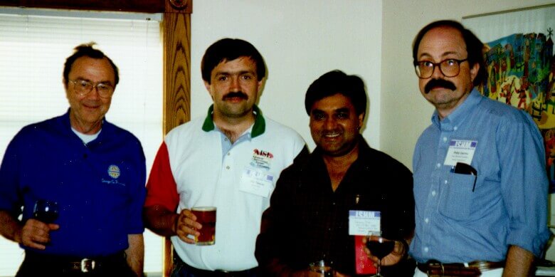 Figure 1 complete list of award winners is shown along with Ted Tessier, winner of the Lifetime Achievement Award. Figure 2 is a photo of Ted and me in 1996 at the Ogunquit Maine IMAPS Multichip Module workshop. For all you microelectronics history lovers, that’s George Harman, the acknowledged father of wirebonding on the far left. Ted and I go back to the time we spent together at the Microelectronics Center of NC in the late 1980s.