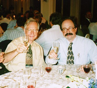 Several folks were made fellows of the society, but I have to call out my old friend Paul Van Loan who was IMAPS President in the late 1990s and spent most of his career working at HP. We used to have Presidential Roasts in those days, which would certainly not be considered politically correct by today’s standards, but then again no one ever accused me of being PC. I led up to Paul’s roast which included dressing Canadian-born Paul up as a Canadian Mountie (Figure 5). Figure 6 is a photo of us toasting something or someone at the IMAPS Europe meeting in Venice in the late 1990s. Another societal comment – note those were the days when we all wore ties at conferences…not so much anymore!