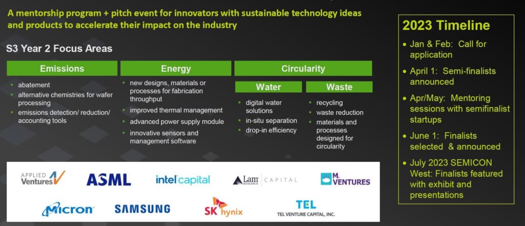 The program enables either startups or companies with ideas to pitch to VCs and potentially create real change in the semiconductor sustainability space. Some ideas from the first year’s program, are reverse osmosis filters that require less energy to operate, and motors that don’t use as much copper and use less energy to achieve the desired results.