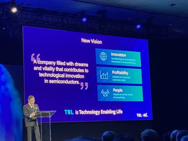 Tony Kawai, CEO of TEL, presented Keys to Create $1T in Shared Value. It is TEL’s 60th anniversary. Kawai, touched on the fact that many of the drivers of the chip industry are driving us towards green technology and that some of the advances of the digital revolution are requiring us as an industry to be greener. He explained that because the die size for AI and data centers is 800mm2 and data centers’ energy use is growing at an unsustainable rate due to training AI models, the equipment and chip manufacturers need to find a way to reduce their energy consumption as well as carbon footprint. Kawai presented a new TEL etch tool that reportedly uses 43% less power and reduces the carbon footprint by 83%, and to top it off is 2.5x faster than the current etch technology.