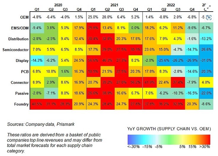 The current state of the electronics industry’s supply chain presents an unusual scenario in that very rarely do all segments simultaneously enter a period of “substantial cooling”. They indicate that “Not since the depths of the recession of 2008-2009 have we witnessed such a profound cooling-off period”.