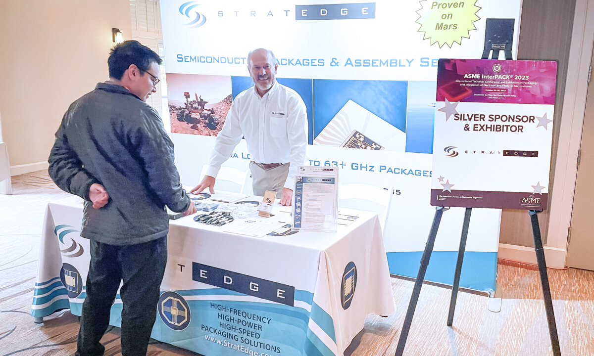 Santee, Calif. – 30 November 2023 –StratEdge Corporation, leader in the design and production of high-performance semiconductor packages for RF, microwave, and millimeter-wave devices, proudly announces its latest presentation, “Package and Die Attach Materials for High-Power GaN Devices,” which was presented at InterPACK 2023 in San Diego in October. This presentation delves into crucial aspects of packaging, materials, and assembly methodologies significant to Gallium Nitride (GaN) devices. StratEdge’s research underscores that maximizing thermal dissipation for high-power devices is achievable through the optimization of the die-attach assembly process and package material choices.