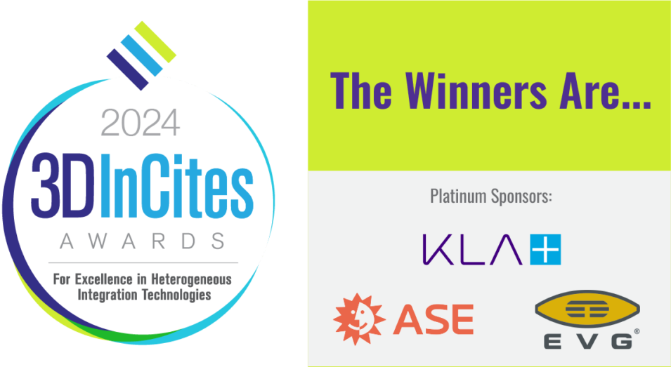 It was an interesting year for the 2024 3D InCites Awards as we changed our processes, criteria, and categories to improve the program. We intended to provide more opportunities for participation across the heterogeneous integration supply chain, and we are happy with the outcome. A special thank you to the Platinum Sponsors of this year’s event – ASE Group, KLA, and EV Group. Without the financial support of these companies, this program would not be possible.