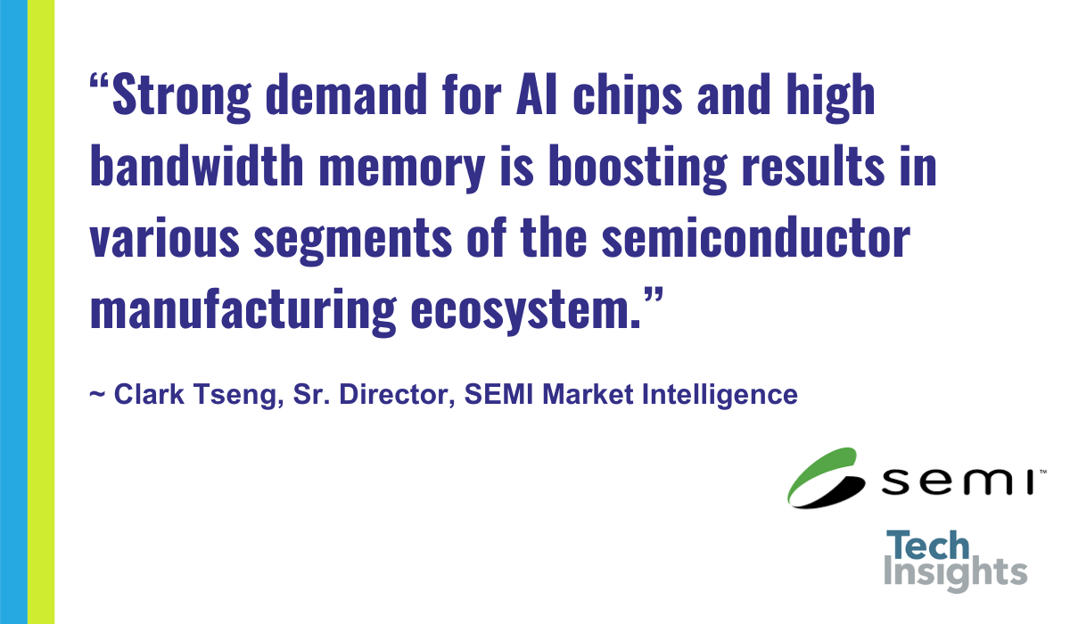 “The entire semiconductor supply chain is recovering this year as the market prepares for a surge in 2025,” said Boris Metodiev, Director of Market Analysis at TechInsights. “AI is certainly continuing to drive high value ICs to the market, while also supporting CapEx for capacity expansion of AI chips and especially HBM. As consumer demand recovers, and new technologies like AI are pushed to the edge, unit volumes and especially revenues will recover and support the broader semiconductor manufacturing sector.”