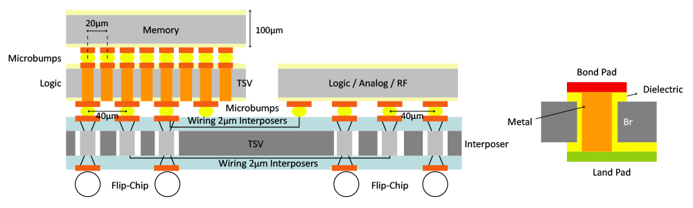 Chiplet-based architectures support heterogeneous integration, wherein components with varying materials, linewidth nodes, and functionalities are co-packaged. This method enables system designers to optimize performance by using the best technology for each system. 3D heterogenous integration requires wafer bumping, redistribution layers (RDLs), Through silicon vias (TSVs), silicon or glass interposers for direct connectivity, reducing latency and power losses and eliminating wire bonds.