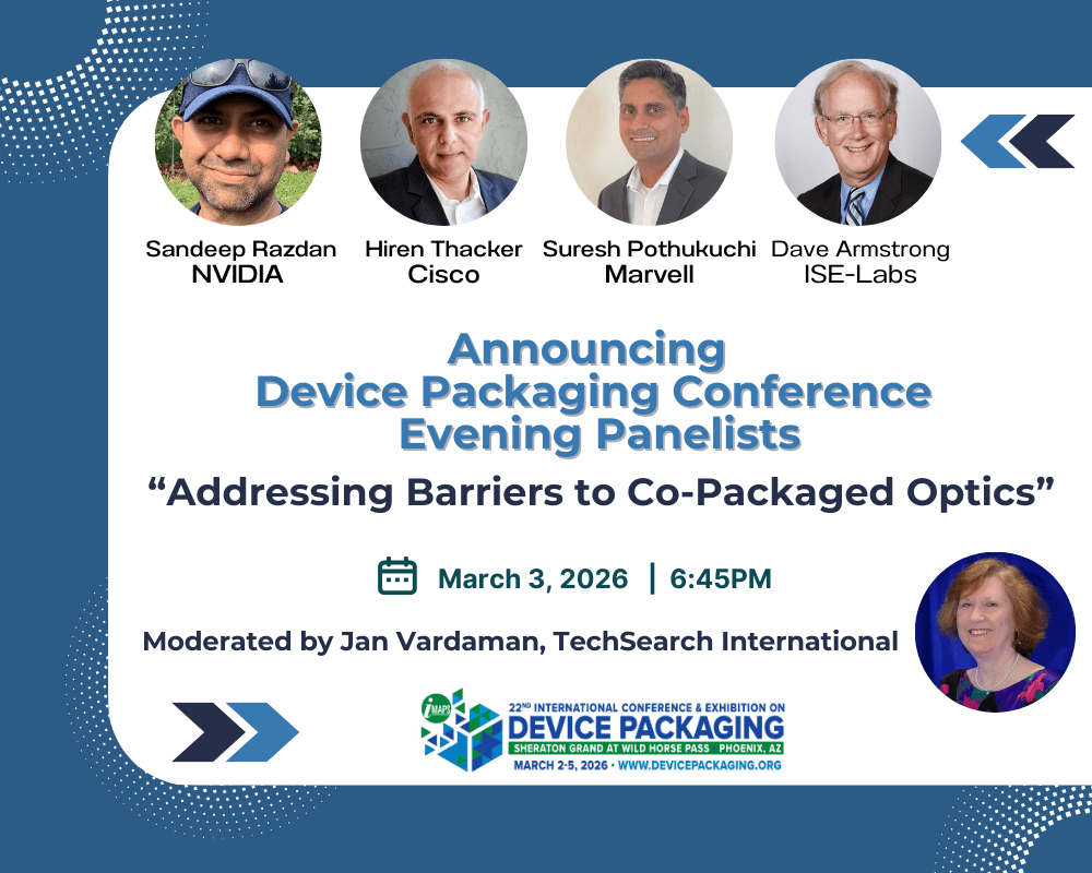 A stellar lineup is the foundation of a great panel discussion ~ and we have the perfect group for the “Addressing Barriers to Co-Packaged Optics” panel session on March 3 at Device Packaging Conference in Phoenix.