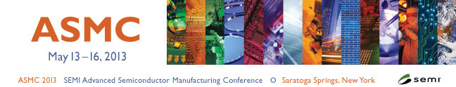 ASMC 2013 schedule includes keynotes, tutorials, a panel, 15 technical sessions, including the popular interactive poster session/reception. On-site registration opens May 13 at 6:30pm. After picking up your conference materials, join your fellow attendees at the ASMC 2013 Welcome Reception for an excellent networking opportunity prior to the conference. Of particular interest to 3D IC enthusiasts, this year’s agenda features a 3DTSV session that will cover key innovation in the field of 3D/Through-silicon via technology (TSV) including TSV processing, The session is chaired by Hamid Khorram, Nikon; James Lu, RPI; Thuy Tran-Quinn, IBM. Thursday, May 16 will feature a 3D IC tutorial lead by Sarasvathi Thangaraju, Package Technology and Integration,GLOBALFOUNDRIES.