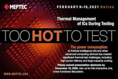 MEPTEC to host a virtual event entitled, “Too Hot to Test,” exploring the thermal management of ICs during testing. This virtual event will be held online February 9 – 10, 2021.