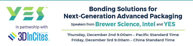 Reliable, effective bonding technology is success-critical for today’s advanced packaging applications. This webinar will discuss current and emerging heterogeneous integration architectures, and technologies for achieving strong wafer-to-wafer bonds, advanced solder interconnects, and future structures using hybrid bonding. Various technologies and material systems used in temporary bond/debond for backside processing, and an exciting new reversable bonding technology for silicon and non-silicon substrates will also be discussed. Speakers include representatives from Intel, Brewer Science, and YES.